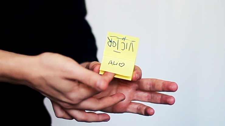 Imagine this, you sign a Post-it, ask to the spectator to peel it off from the pad and exam it, then you stick this Post-it outjog into the next one and the spectator signs this second Post-it... When you peel the spectator's Post-it and you have yours sticked on his, looks like is one single large post-it but in reality are two, the spectators can see that this is true. Now, without palming anything, with no sneaky moves or weird actions and with both signatures in full view the hole time, you just rub the gap between both post-its and smoothly there are fuse together in one large single piece, with both signatures on it!